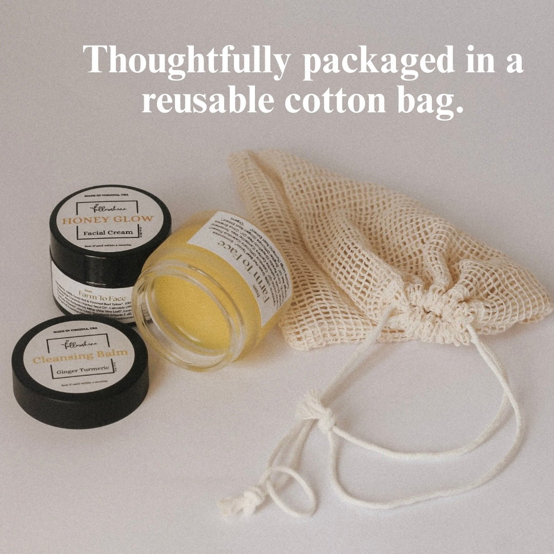 Cleansing Balm: 100% Grass-Fed Beef Tallow*, Simmondisia Chinensis (Jojoba) Oil*, Calendula Officinalis (Calendula Flower)*, Sorbitan Olivate, Euphorbia Cerifera (Candelilla) Wax, Tocopherol (Vitamin E), Citrus Paradisi (Grapefruit) Peel Oil*, Citrus Sinensis (Orange) Peel Oil*, Zingiber Officinale (Ginger) Root Extract*, Curcuma Longa (Turmeric) Root Extract* *Organic