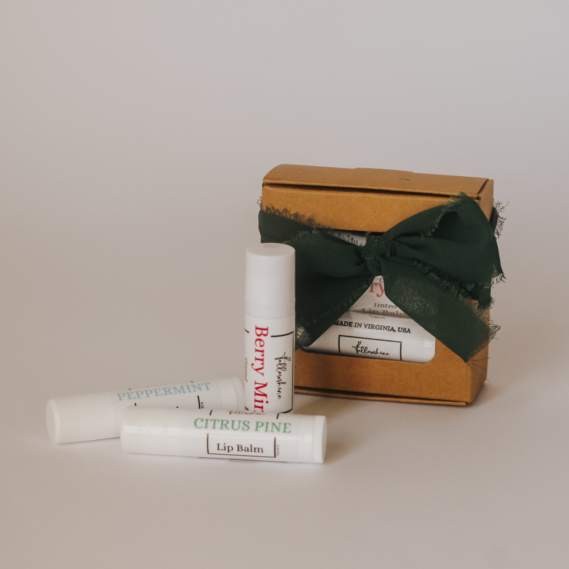 This limited-edition trio includes Peppermint, NEW Citrus Pine, and NEW Tinted Berry Mint— each made with nourishing tallow, mango butter, and high quality beeswax for silky, hydrated lips all winter long. Gift-ready and perfect for stockings.